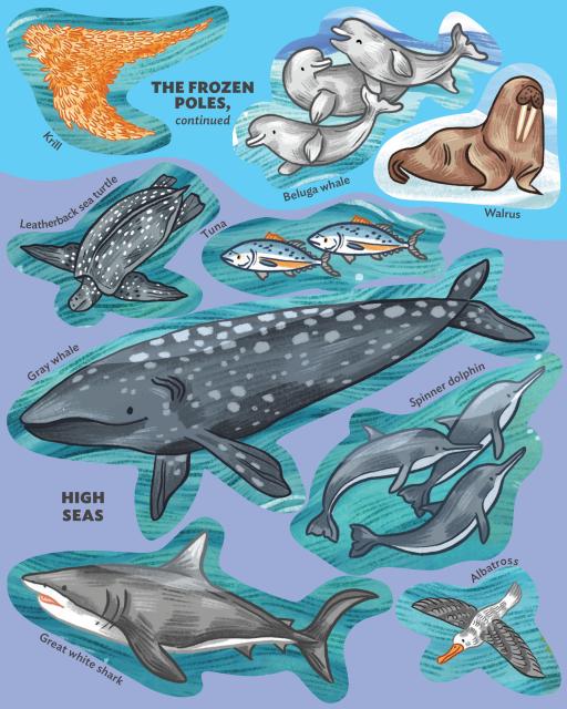 This big, colorful poster activity book invites kids ages 4–8 to complete the scene by adding 50 sticker puzzle pieces, all featuring creatures found in the world’s oceans.
