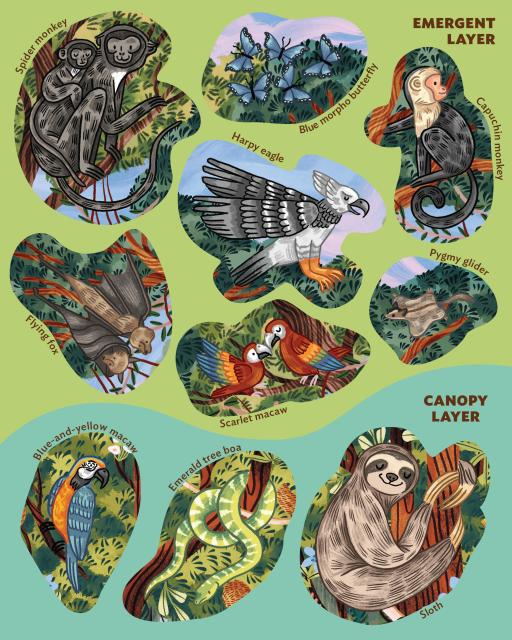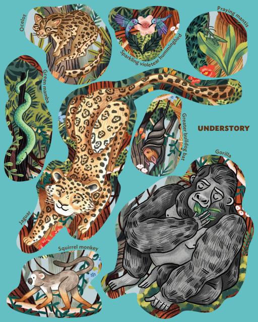 This big, colorful poster activity book invites kids ages 4–8 to complete the scene by adding 50 sticker puzzle pieces, all featuring creatures who inhabit rainforests around the world.